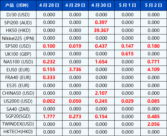 请注意, 以上数据仅供参考,所有数据均以MT4/MT5软件实际执行情况为准。