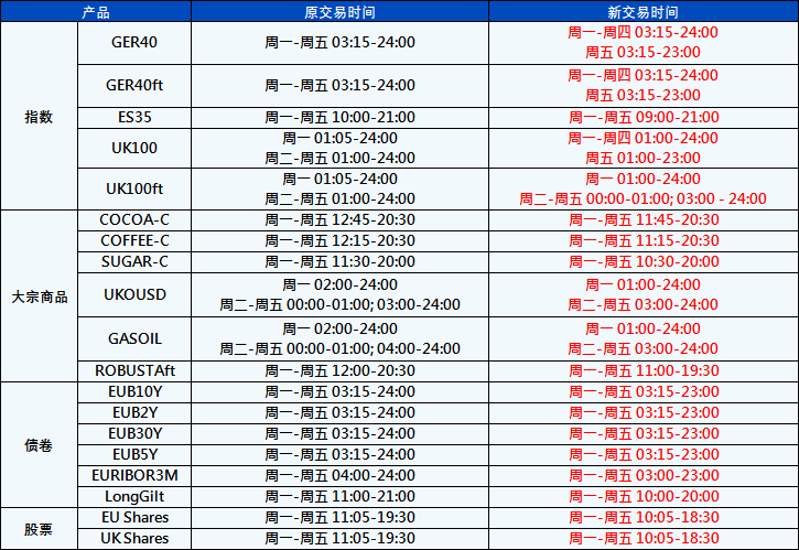 若您正在使用的智能交易/自动化交易系统需要手动设置交易时间,请务必确保在此变更前做好相关调整设置。