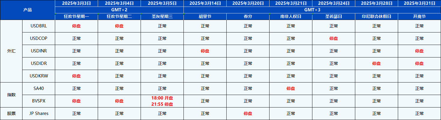 您好,受即将到来的3月份假期影响,PU Prime的交易时间将有所调整。
