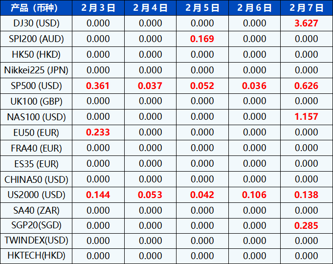请注意, 以上数据仅供参考,所有数据均以MT4/MT5软件实际执行情况为准。