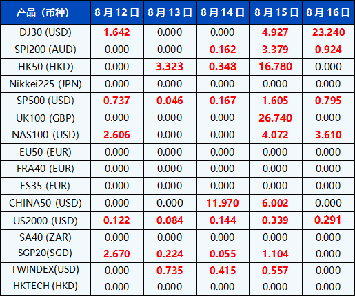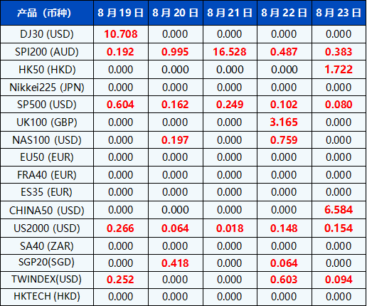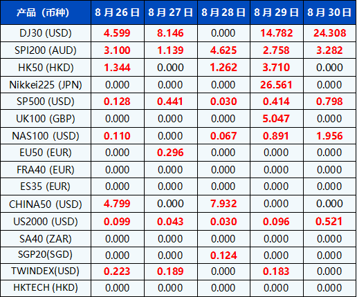 请注意, 以上数据仅供参考,所有数据均以MT4/MT5软件为准。