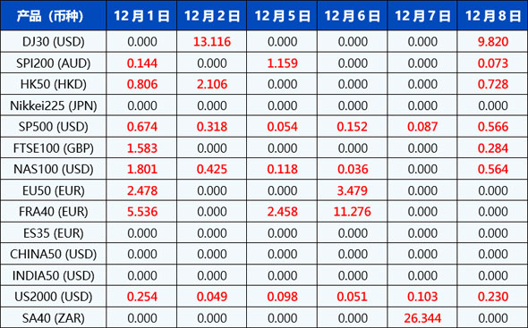 请注意, 以上数据仅供参考,所有数据均以MT4/MT5软件为准。