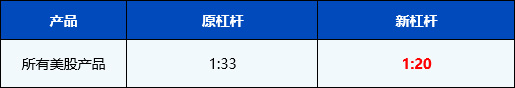注意:所有美股产品杠杆较调整前减少至20倍,并且保证金将相应增加; 我们强烈建议持仓相关产品的客户合理控制仓位以确保账户内资金充足,并谨慎交易。