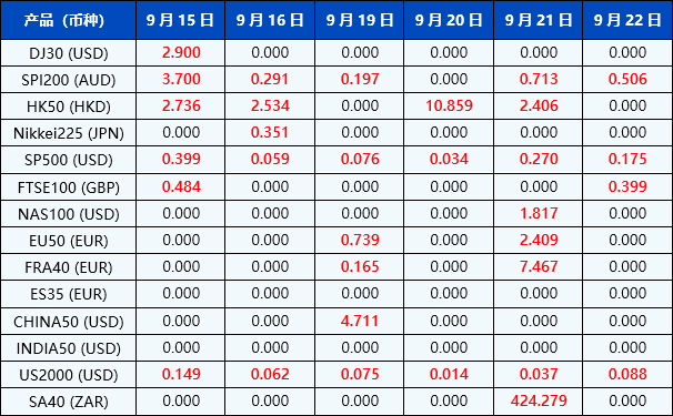 请注意, 以上数据仅供参考,所有数据均以MT4/MT5软件实际执行情况为准。
