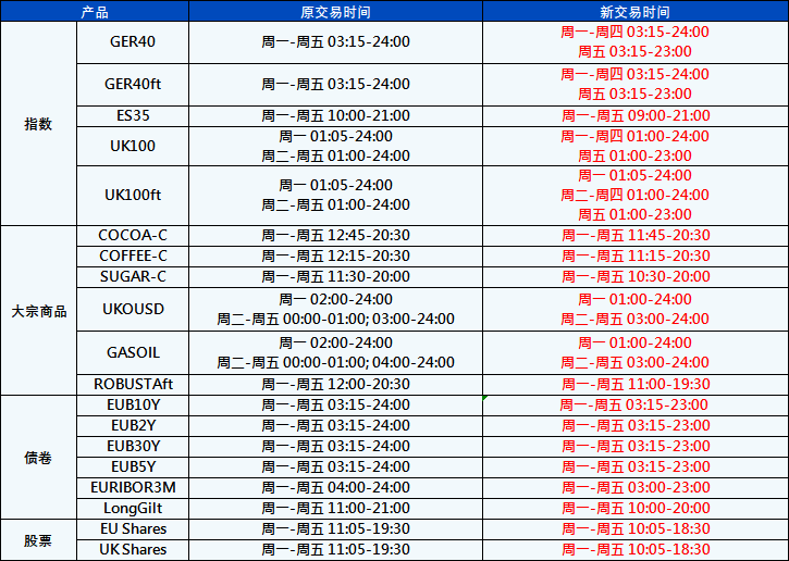 若您正在使用的智能交易/自动化交易系统需要手动设置交易时间,请务必确保在此变更前做好相关调整设置。