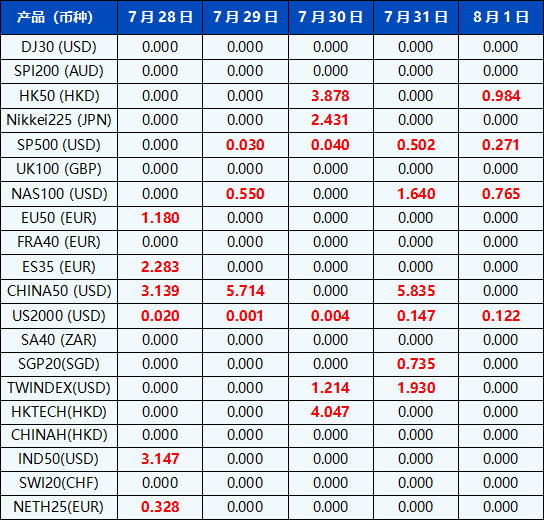 请注意, 以上数据仅供参考,所有数据均以MT4/MT5软件实际执行情况为准。